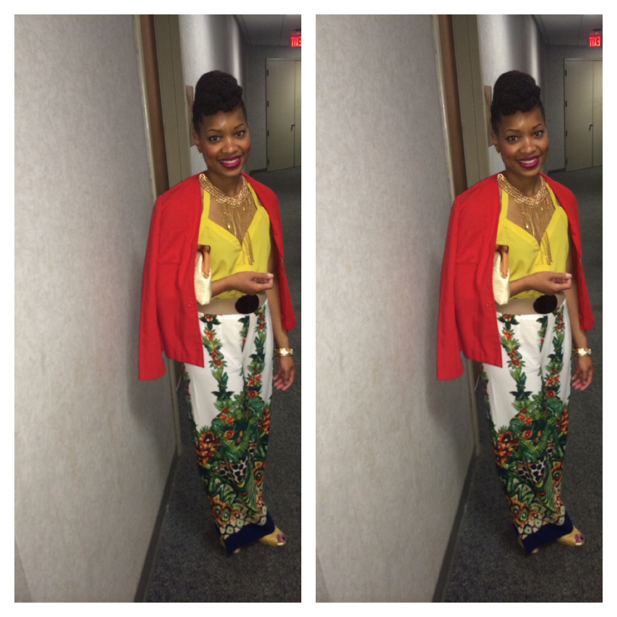 Another option would be to pair a blouse and high-waisted Palazzo Pants with an open toe sandal or booties to create a great combination.