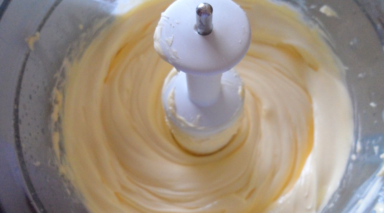 Blend together in your food processor (or try smaller amounts whipped with a fork) equal parts of olive oil (or other good-quality vegetable oil), unsalted butter at room temperature and water. To make a large amount, try one cupful of each of the above (less if you are mixing by hand).
