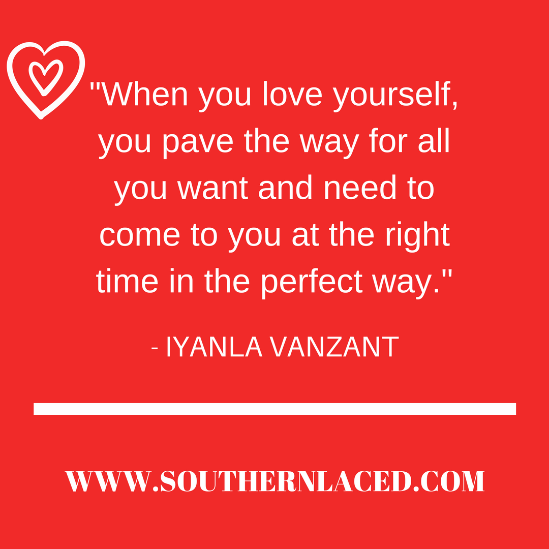 “Loving yourself has nothing to do with being selfish, self-centered or self-engrossed. It means that you accept yourself for what you are. Loving yourself means that you accept responsibility for your own development, growth and happiness. When you love yourself, you pave the way for all you want and need to come to you at the right time in the perfect way.” – Iyanla Vanzant