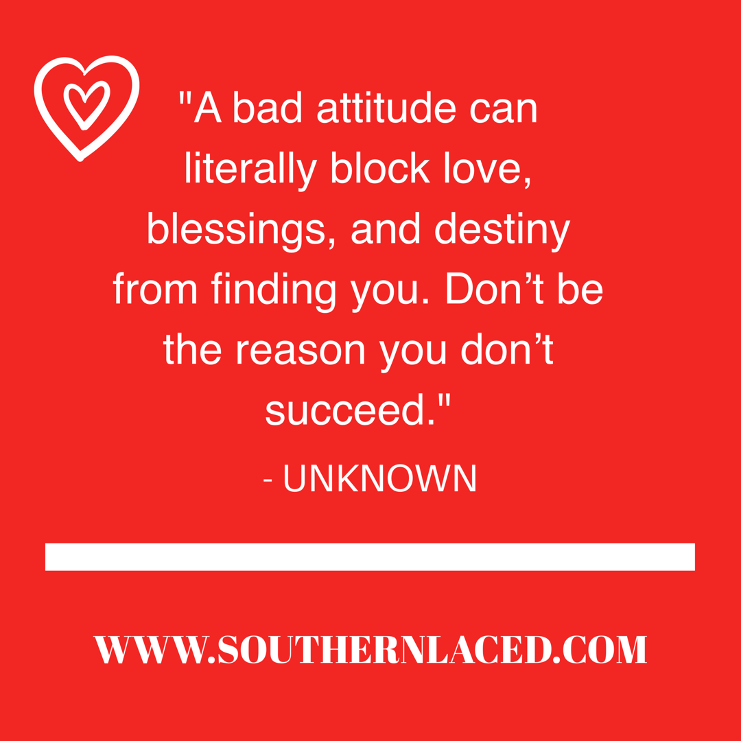“A bad attitude can literally block love, blessings, and destiny from finding you. Don’t be the reason you don’t succeed!- Unknown