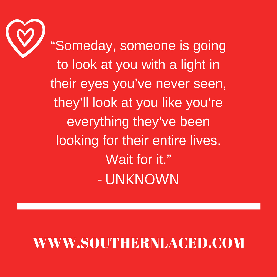 “Someday, someone is going to look at you with a light in their eyes you’ve never seen, they’ll look at you like you’re everything they’ve been looking for their entire lives. Wait for it.” – Unknown