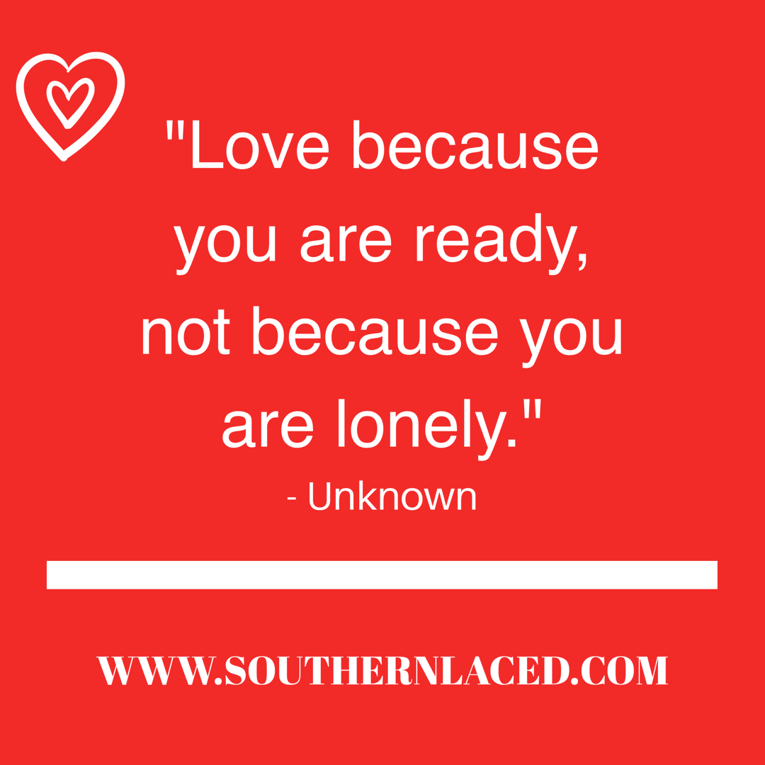 “Love because you are ready, not because you are lonely.” – Unknown