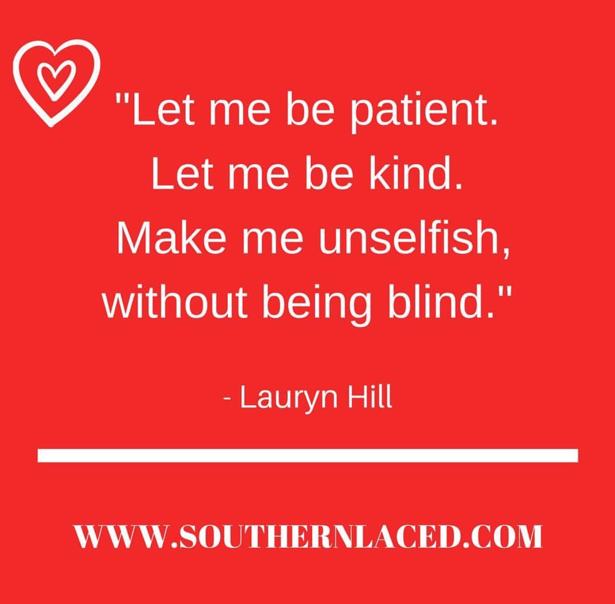 “Let me be patient. Let me be kind. MKe me unselfish, without being blind.” – Lauryn Hill