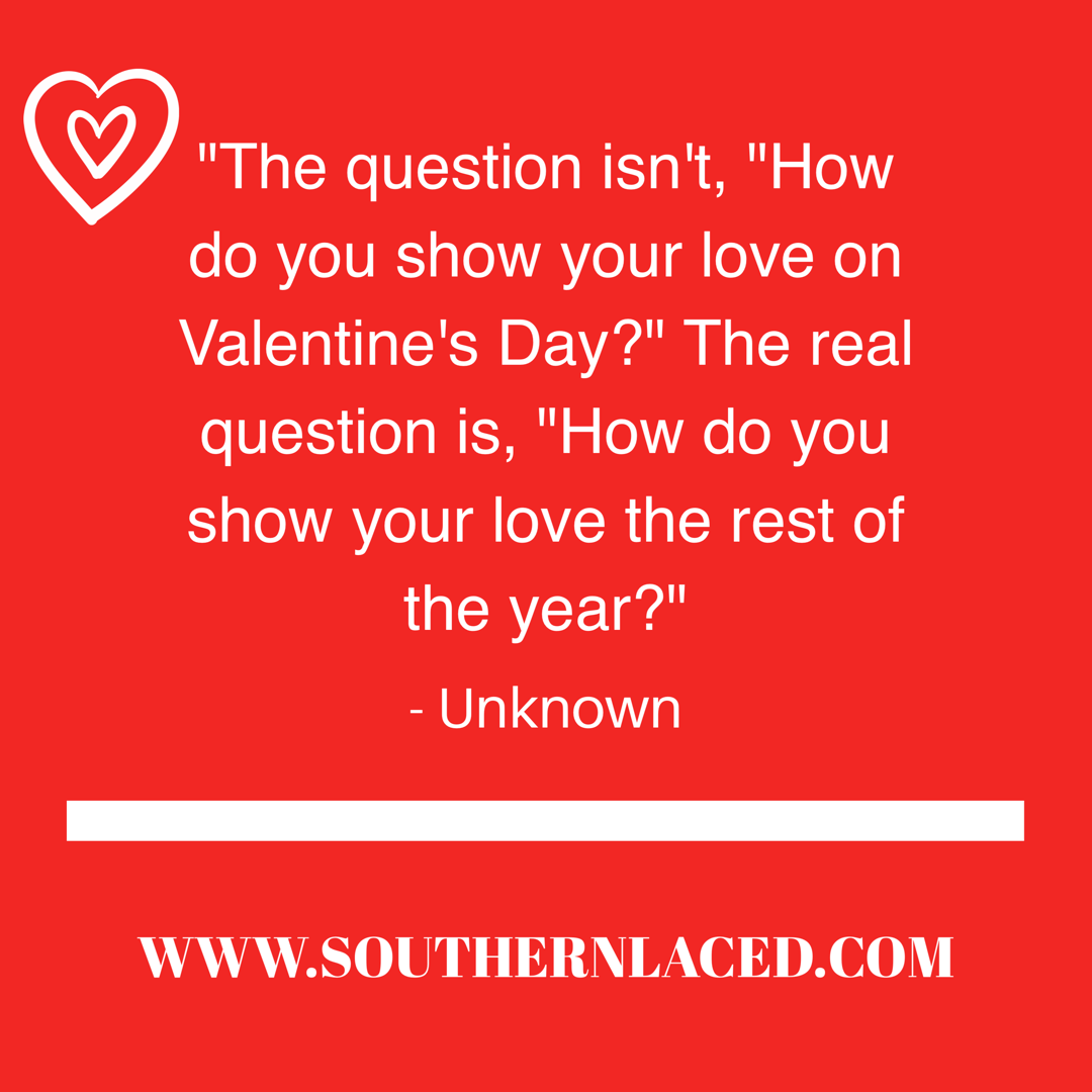 “The question isn’t, “How do you show your love on Valentine’s Day?” The real question is, “How do you show your love the rest of the year?” – Unknown