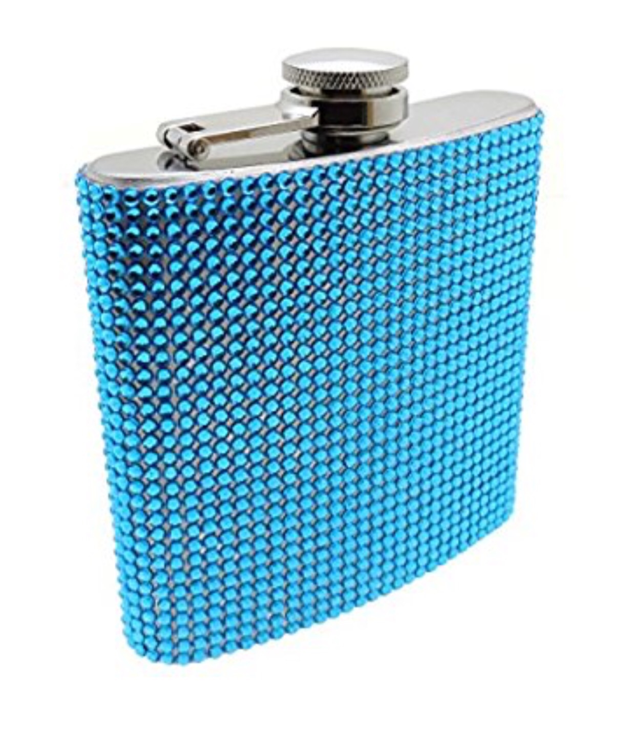 Bling Rhinestone Diamond Stainless Steel Hip Flask – Holds 6 oz (Blue), Amazon