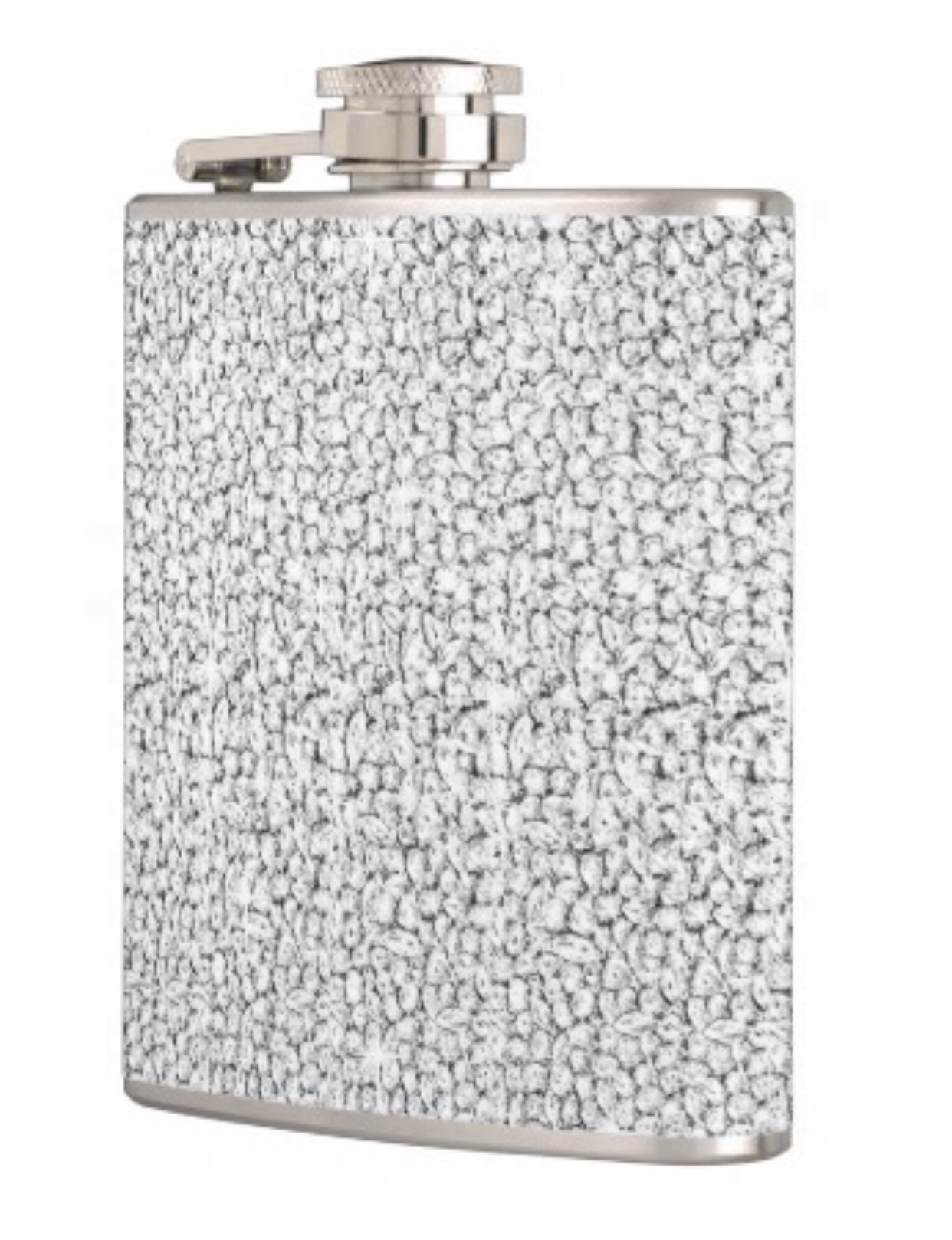 White Diamond Bling Sparkle Shine Pattern Flask, Zazzle