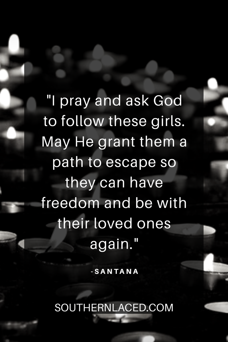 I pray and ask God to follow these girls. May He grant them a path to escape so they can have freedom and be with their love ones again.