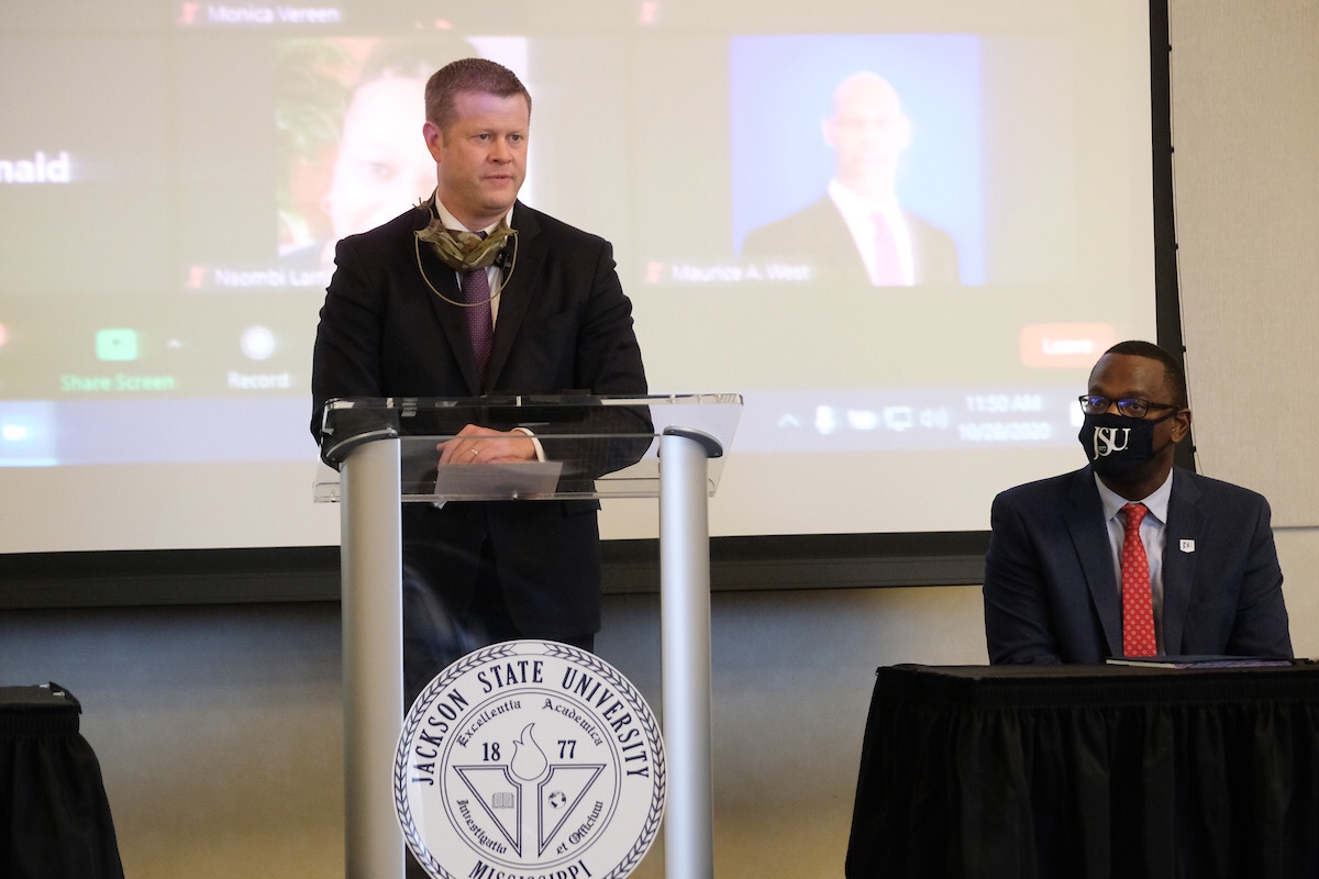 (JACKSON, Miss.) — Seeking greater inclusion and diversity in the military, U.S. Army Secretary Ryan McCarthy convened Wednesday at JSU with leaders of Historically Black Colleges and Universities and other influencers during a daylong forum and presented a $2.8 million check to be divided among 26 HBCUs.