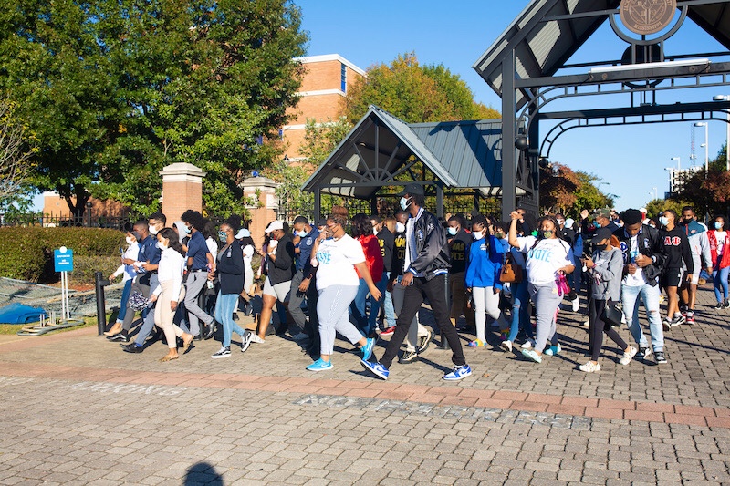 Anaiah Evans, vice president of SGA, organized two rallies – at 11 a.m. and 3 p.m.on Election Day. The campus precinct destination was the Lee E. Williams Athletics and Assembly Center. The walk to the poll from the Gibbs-Green Memorial Plaza took less than 15 minutes.