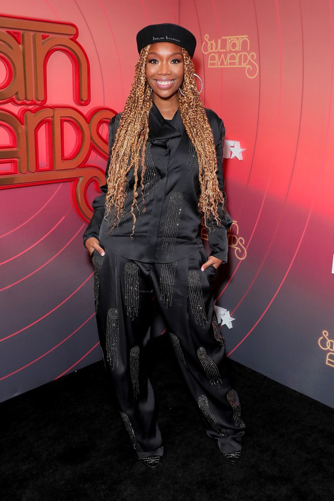 LOS ANGELES, CALIFORNIA – NOVEMBER 29: LOS ANGELES, CA – NOVEMBER 29: In this image released on November 29th, Brandy attends the 2020 Soul Train Awards presented by BET. (Photo by Leon Bennett/STA 2020/Getty Images for BET)