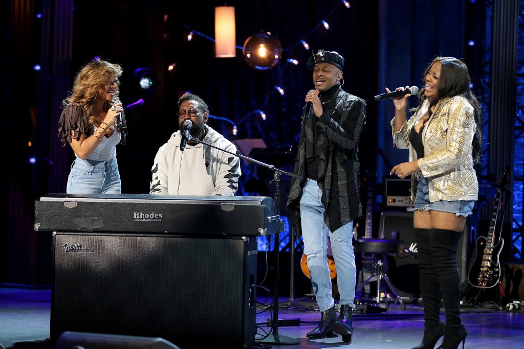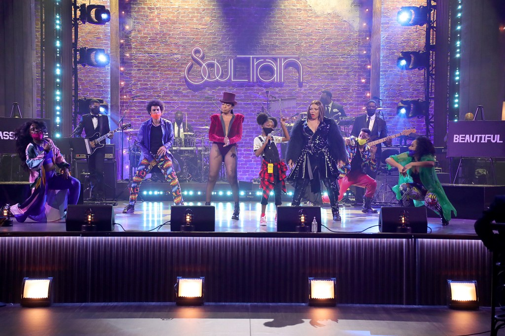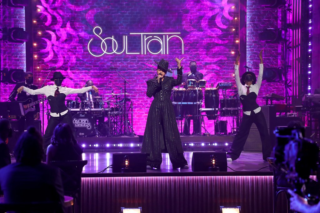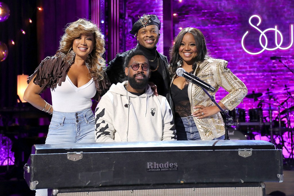 LOS ANGELES, CALIFORNIA – NOVEMBER 29: LOS ANGELES, CA – NOVEMBER 29: In this image released on November 29th, Chanté Moore, PJ Morton, Stokley Williams and Shanice perform during the 2020 Soul Train Awards presented by BET. (Photo by Leon Bennett/STA 2020/Getty Images for BET)