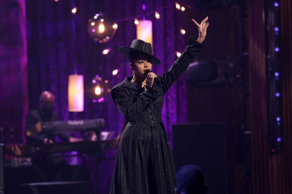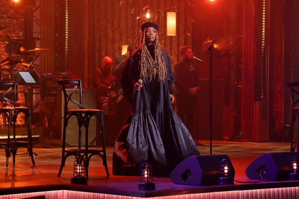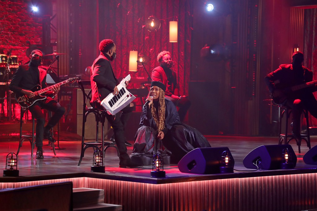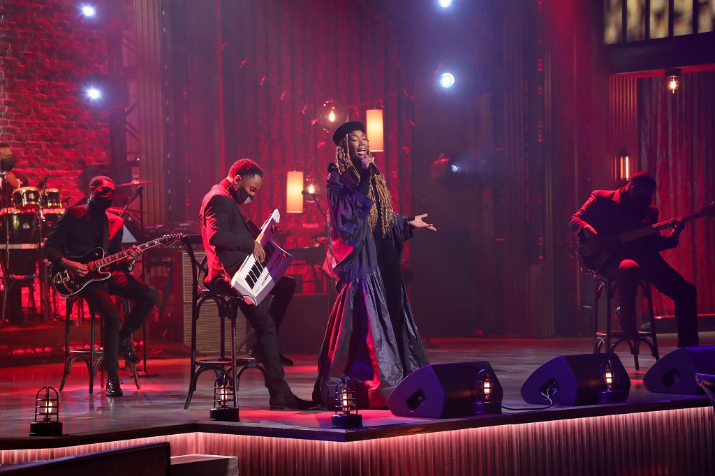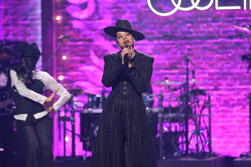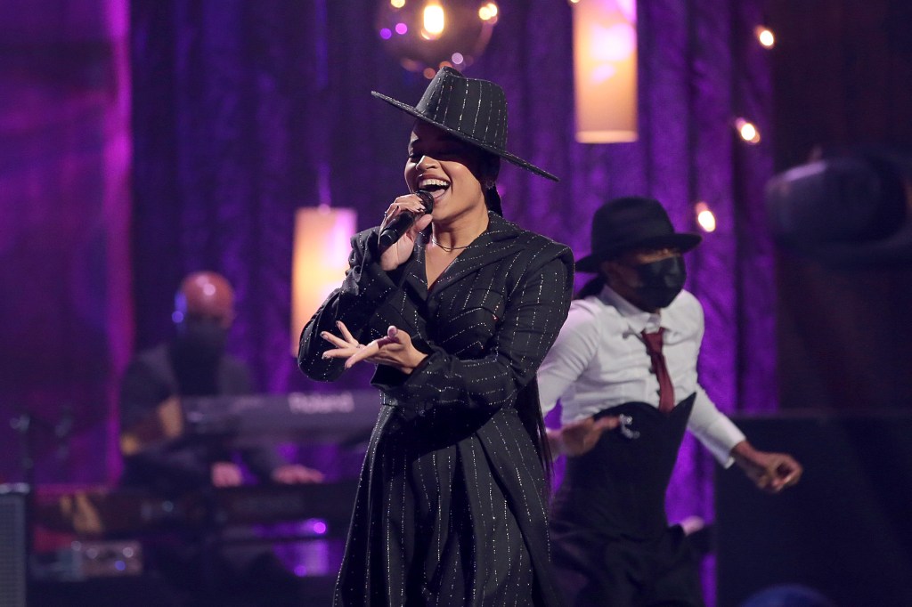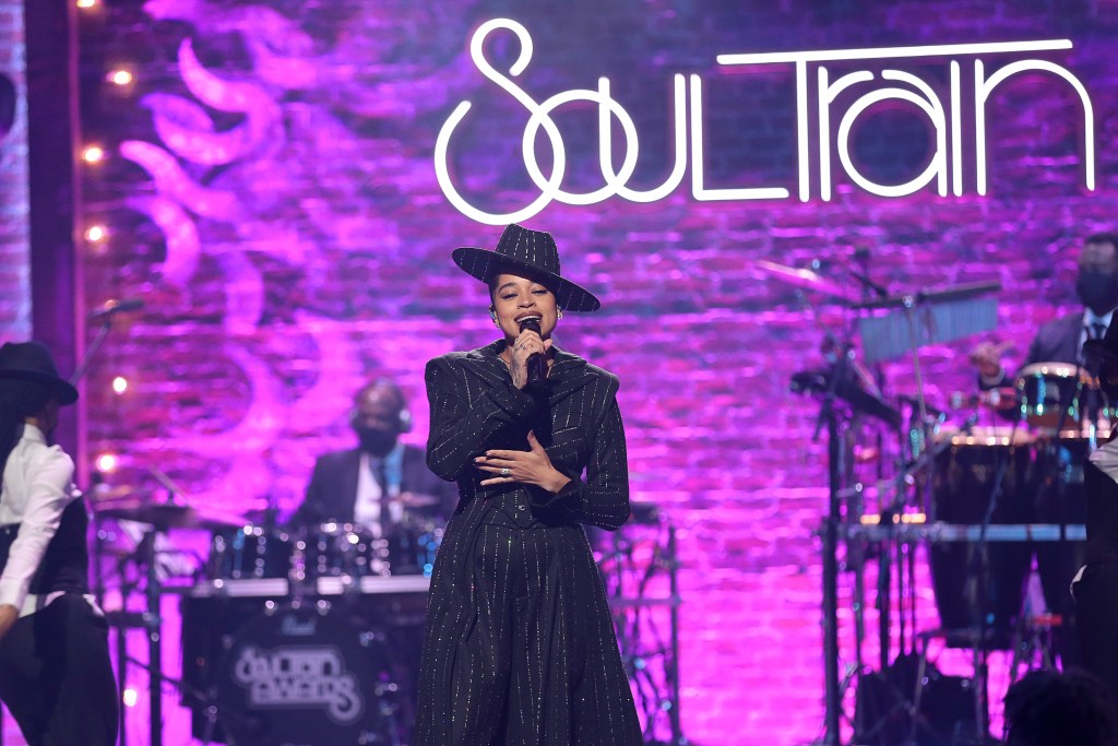 LOS ANGELES, CALIFORNIA – NOVEMBER 29: LOS ANGELES, CA – NOVEMBER 29: EDITORIAL USE ONLY. In this screengrab released on November 29th, Jazmine Sullivan performs during the 2020 Soul Train Awards presented by BET. (Photo by 2020 Soul Train Awards/via Getty Images)