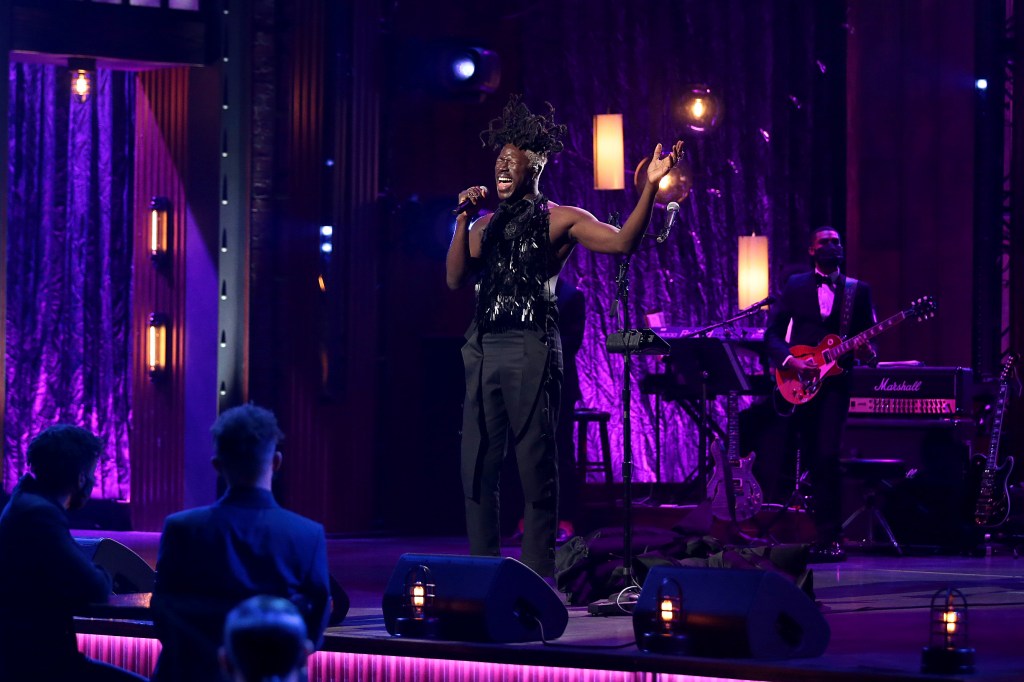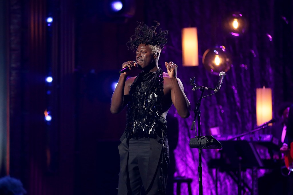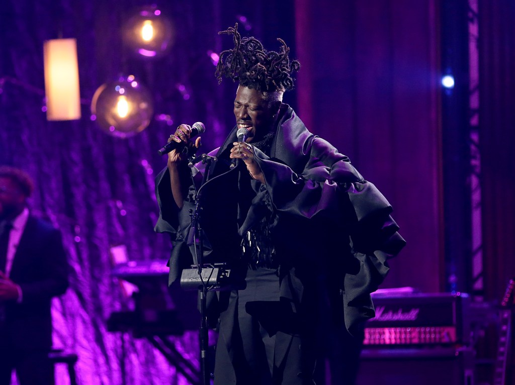 LOS ANGELES, CALIFORNIA – NOVEMBER 29: LOS ANGELES, CA – NOVEMBER 29: In this image released on November 29th, Moses Sumney performs at the 2020 Soul Train Awards presented by BET. (Photo by Leon Bennett/STA 2020/Getty Images for BET)