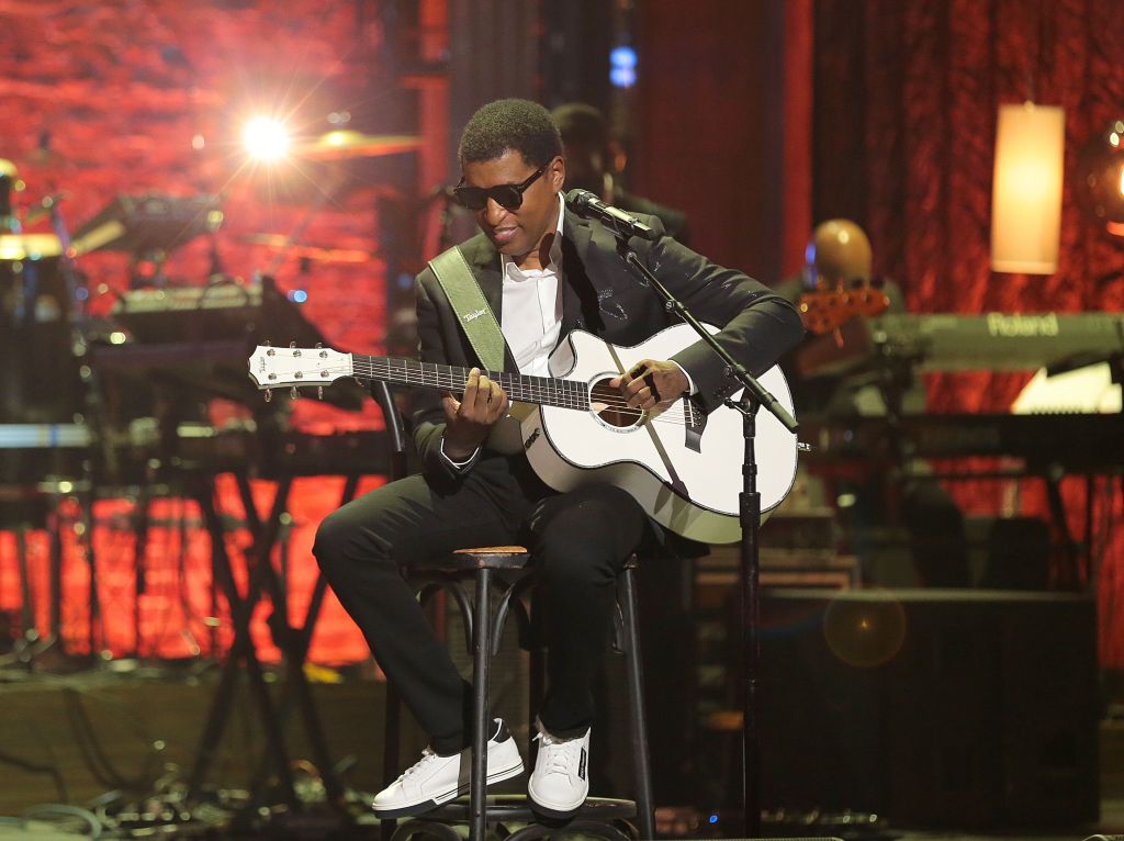 LOS ANGELES, CALIFORNIA – NOVEMBER 29: LOS ANGELES, CA – NOVEMBER 29: In this image released on November 29th, Babyface performs during the 2020 Soul Train Awards presented by BET. (Photo by Leon Bennett/STA 2020/Getty Images for BET)