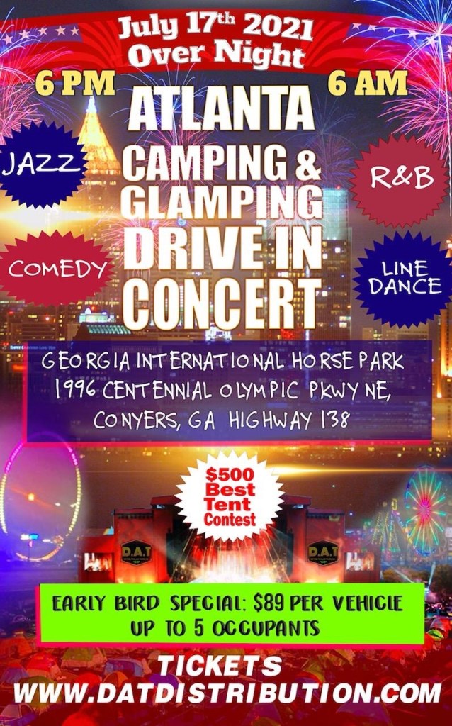 He is an amalgamation of all that is THE CULTURE and he is bringing it all together for this ALL NIGHT THING! “I have always followed my gut when it comes to the chances I take and the choices I make. I think that this is the wave of the future, especially as we work on how we come out of all we’ve been through in the last year plus. People can enjoy the music and the comedy and the culture and each other, without the stuff we still don’t talk about being in our heads. We want the people to have a great time and we are putting together a monster of a show! THE ATLANTA CAMPING AND GLAMPING DRIVE-IN CONCERT is going to be FIYAH! People are calling to see if we have room vehicles the size of buses. We are going to make this a SUMMER CELEBRATION!” The Atlanta Camping and Glamping Drive-In Concert sounds the musical trumpet to the world that says on July 17th.