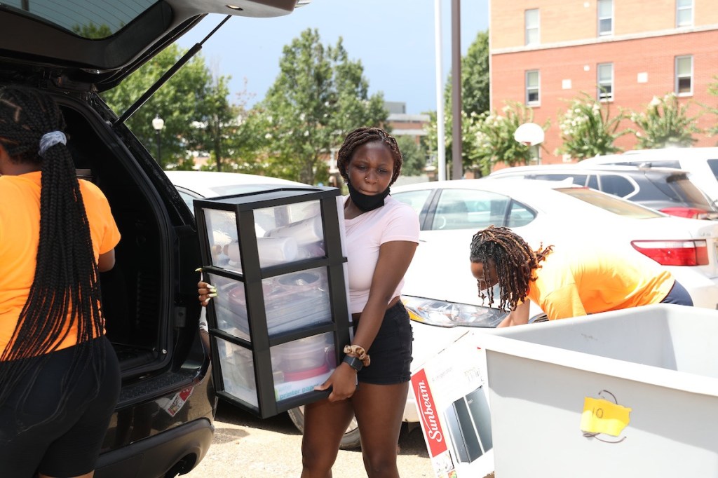 David White of Jackson, a junior studying criminal justice and political science, was a huge help. Carrying luggage and other belongings of newcomers, the vice president of the Alpha Beta chapter of Phi Beta Sigma said he’s helping because “I just love my HBCU. I know how it was when I first got here in 2019 in my freshman year. I had upperclassmen who helped me out. It’s just about showing love. We’re not alumni yet, but that doesn’t mean we can’t help out others. We must also help them grow and develop and to know that we’re all family.”