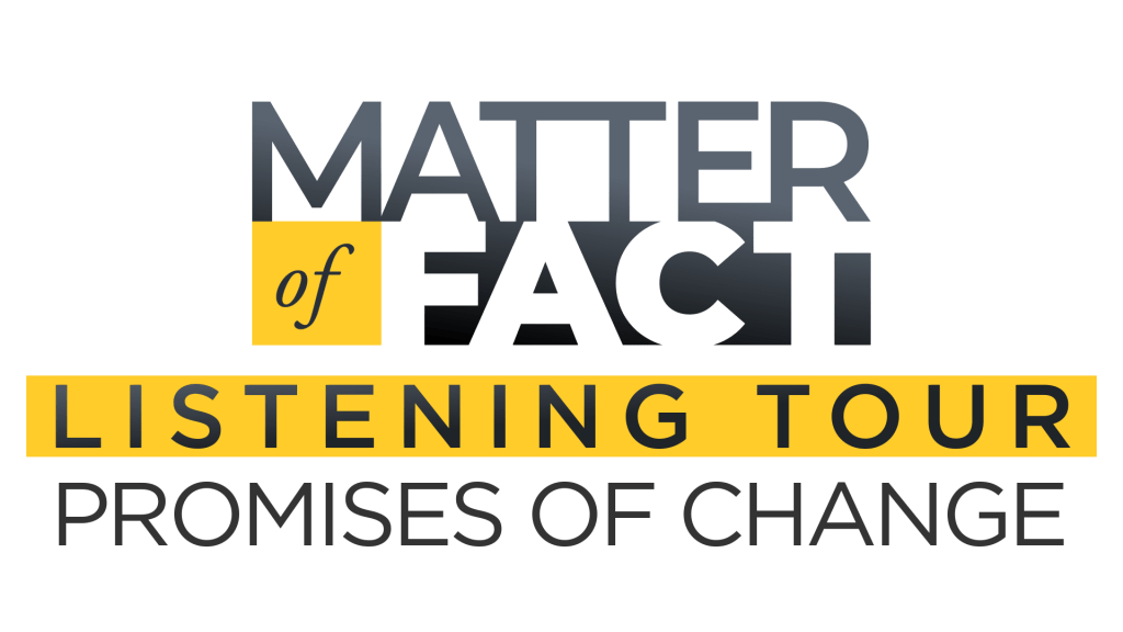 “This latest Matter of Fact Listening Tour enlists the people working to overcome issues of racism and inequality in an effort to explore solutions,” O’Brien said. “I believe that to find solutions you need to understand the problem. That means hearing from people doing the tough work on the ground to understand why things happen and how to change them. It means looking critically at what works and what doesn’t, and taking the time to really listen and question and find ways to move forward.”