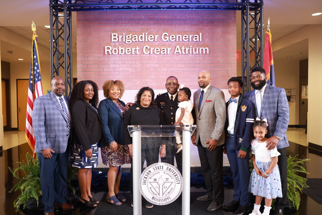 “The naming of this atrium is a testament to the stellar leadership and contributions of Brigadier General Crear and a celebration of his vast legacy at JSU and the imprint he has made in this world,” said Hudson. “We are equally appreciative of the generosity of John Nau, who made this day possible. Together, these men are helping to transform the academic future of our students.”