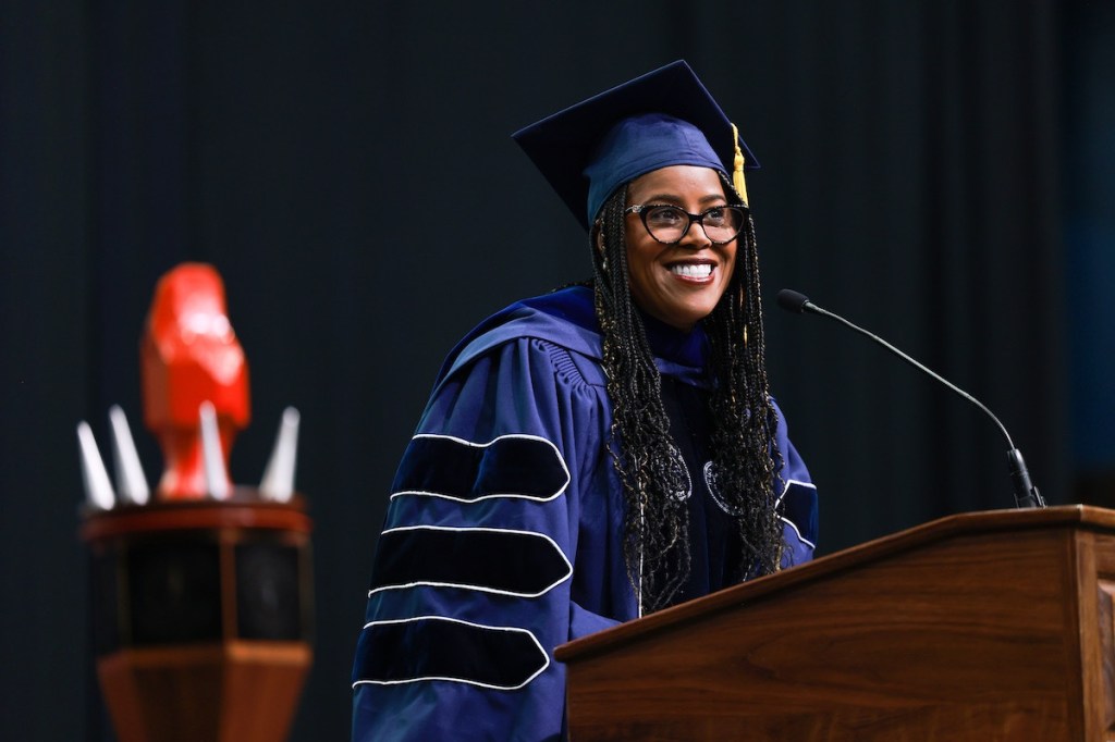 The executive reminded graduates that they are enough. She encouraged them to embrace their authenticity unapologetically and emphasized that their voice was required.