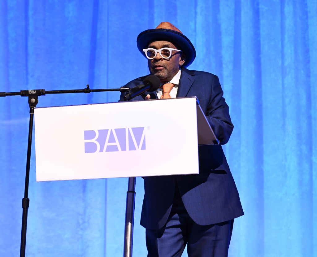 Honoree and famous New York Knick supporter Spike Lee updated the audience on the halftime score of the team’s pivotal playoff game before giving his acceptance speech. An ode to Brooklyn then and now, he recalled how Brooklyn has changed, but the heart has remained the same. He acknowledged BAM president Gina Duncan, long-time collaborator Rosie Perez, and fellow honoree David Byrne.
