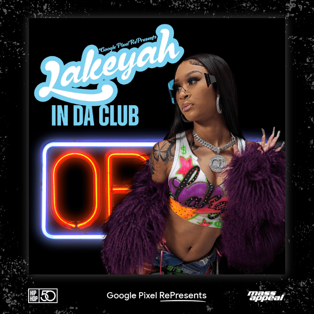 New York, NY. Friday, August 4, 2023. Today, member of the 2021 XXL FRESHMAN Class, Lakeyah releases “In Da Club” (listen HERE) – a spunky and lively retelling of J-Kwon’s 2004 hit single “Tipsy.” The “Female Goat’s“ reimagined track comes courtesy of entertainment company Mass Appeal in partnership with Google Pixel and Sony Music Entertainment’s Certified as part of the “Pixel RePresents” series. In honor of Hip Hop’s 50th anniversary, Pixel RePresents elevates women in Hip Hop by showcasing some of today’s most promising female rappers, reenvisioning genre-defining era transcending songs.