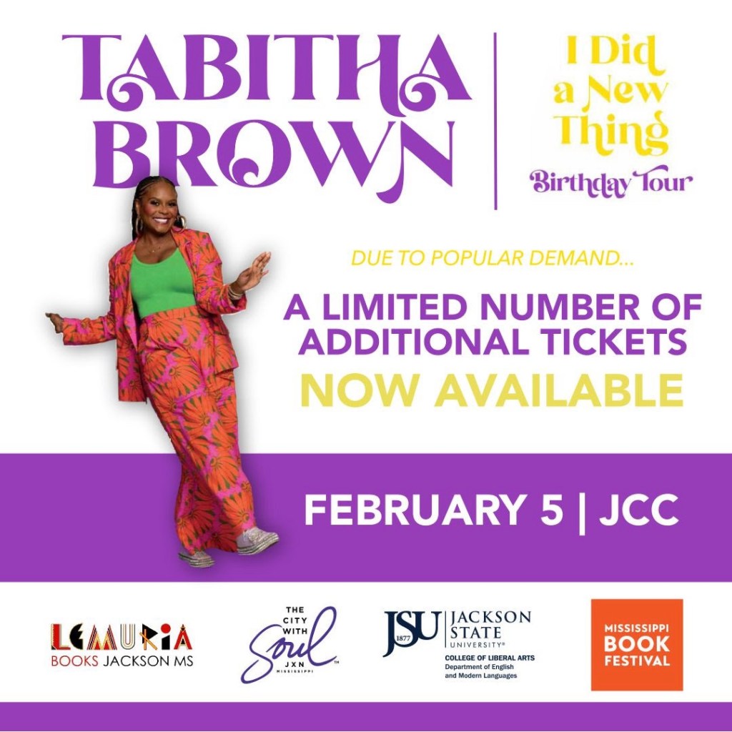 Due to overwhelming demand, a limited number of seats have been added to the February 5 Tabitha Brown I DID A NEW THING Book Tour stop in Jackson, MS!