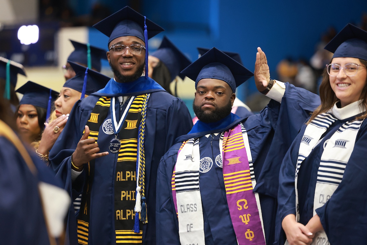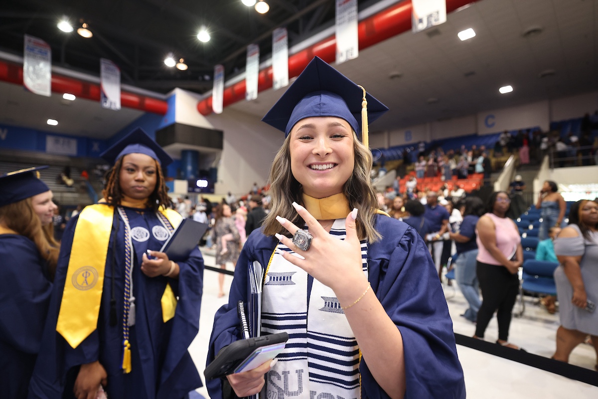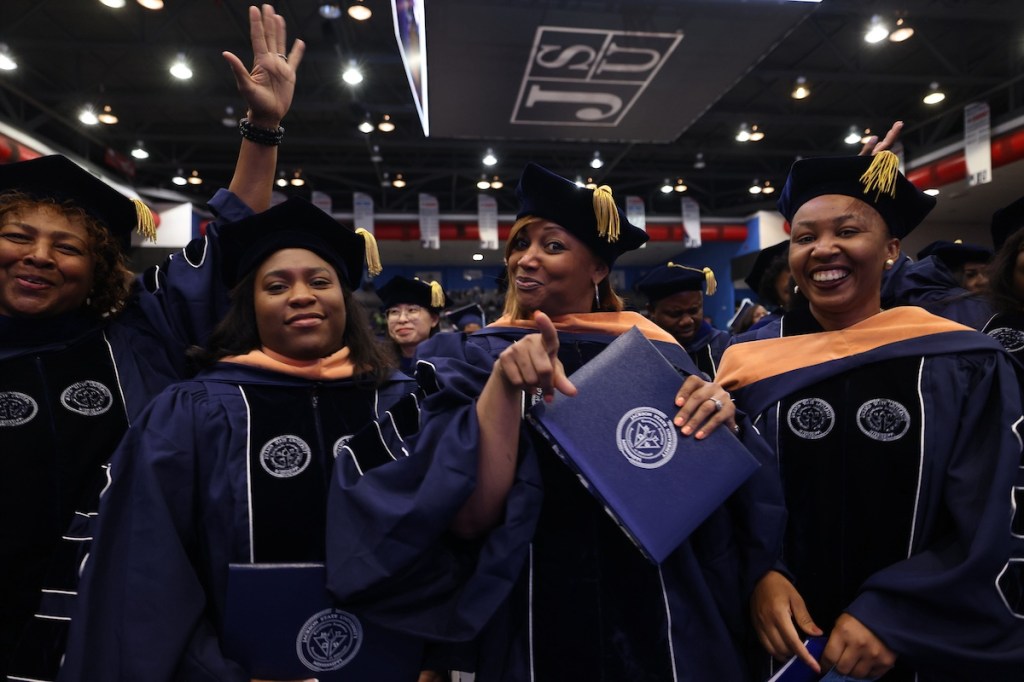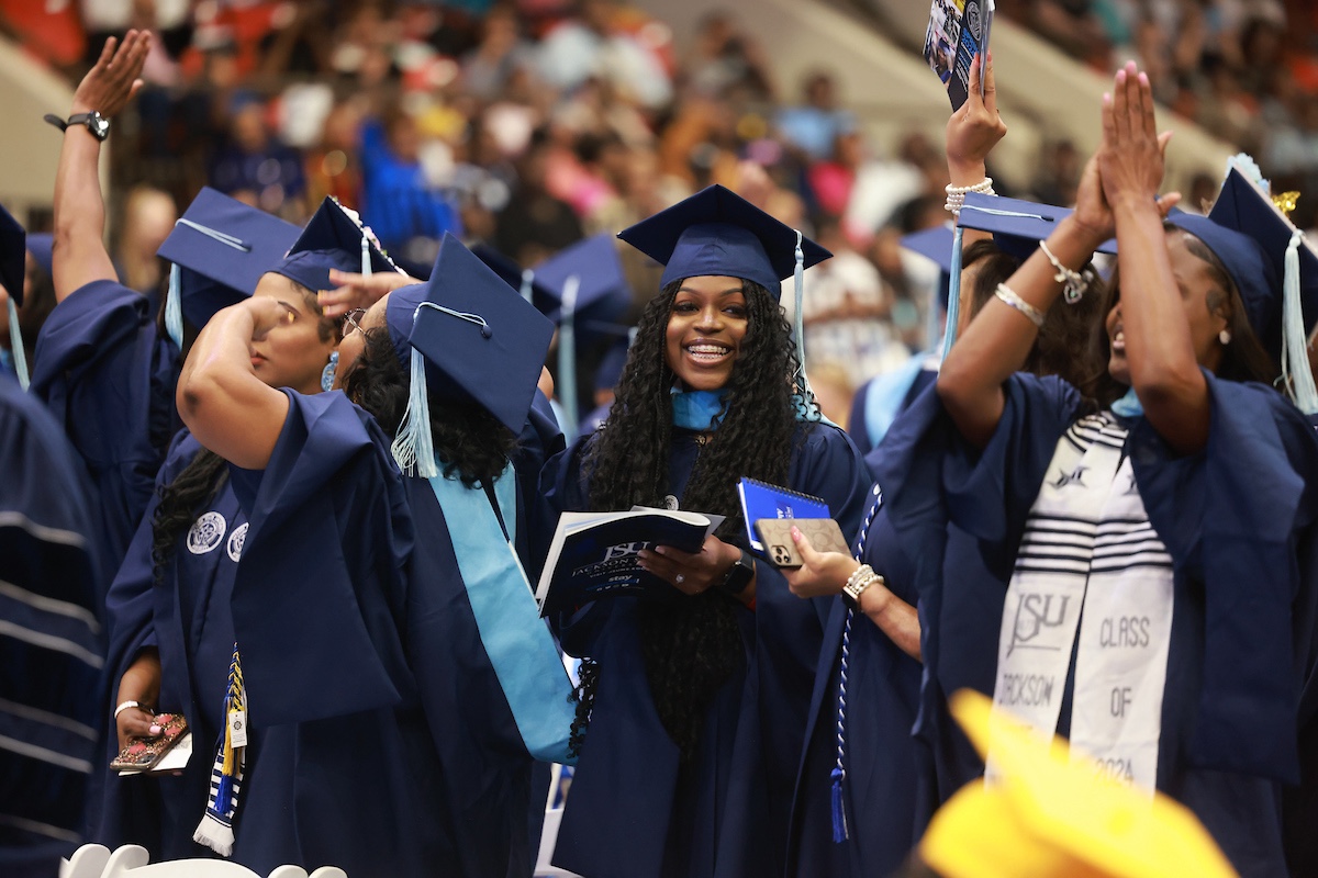 Jackson State University’s Spring 2024 Graduate Commencement, held at the Lee E. Williams Athletics & Assembly Center on Friday, was a vibrant affair, honoring more than 300 students donned in a mix of blue regalia, hoods, stoles, and honor cords. Among them, 115 distinguished graduates from the Golden Class of 1974 were celebrating their anniversary.