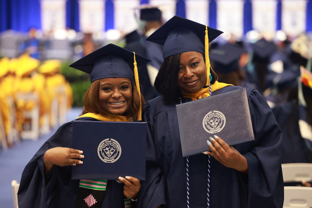 “People in blue gowns, people in yellow gowns, people in no gowns at all. They are the meaning of the degree being placed in your hands. You have the power. You have the knowledge. You have the key. Go do justice. God bless you. God bless Jackson State University, Thee I love, and may she live forever.”